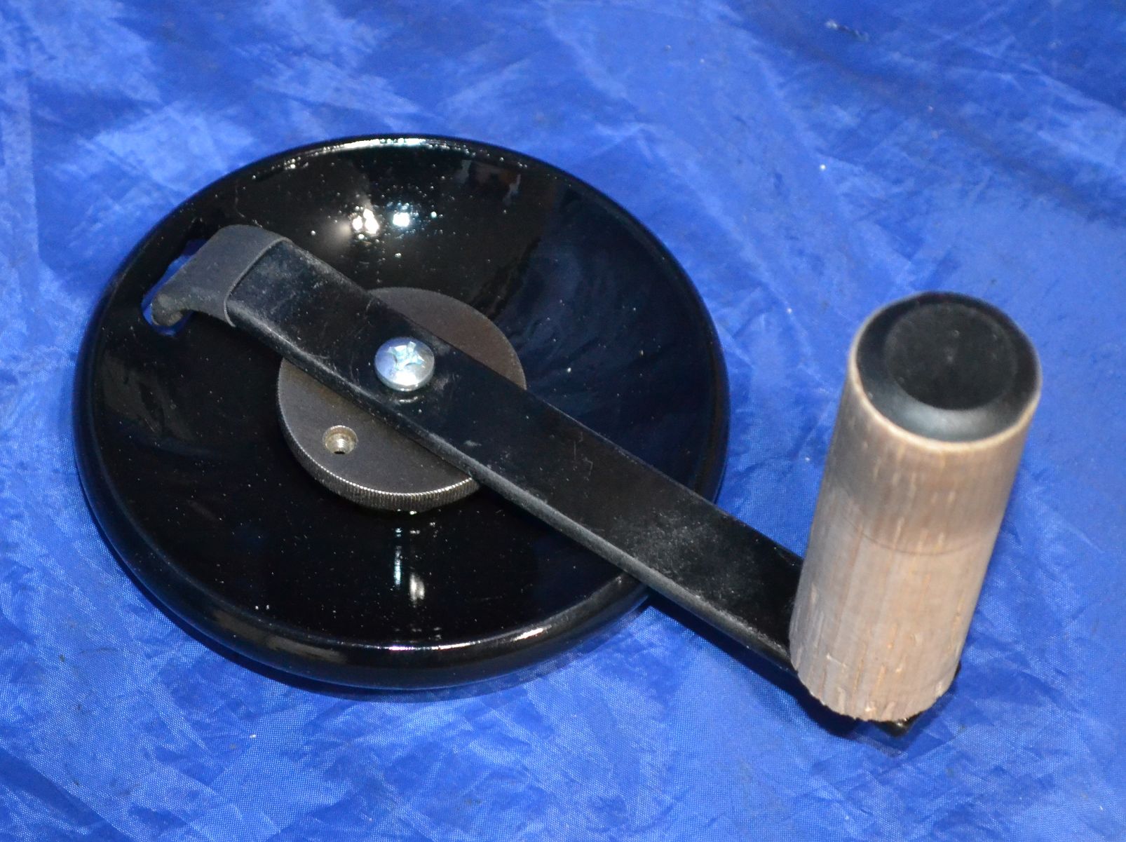 I HAVE CUT A SLOT IN THE HAND WHEEL FOR THE HAND CRANK TO FIT