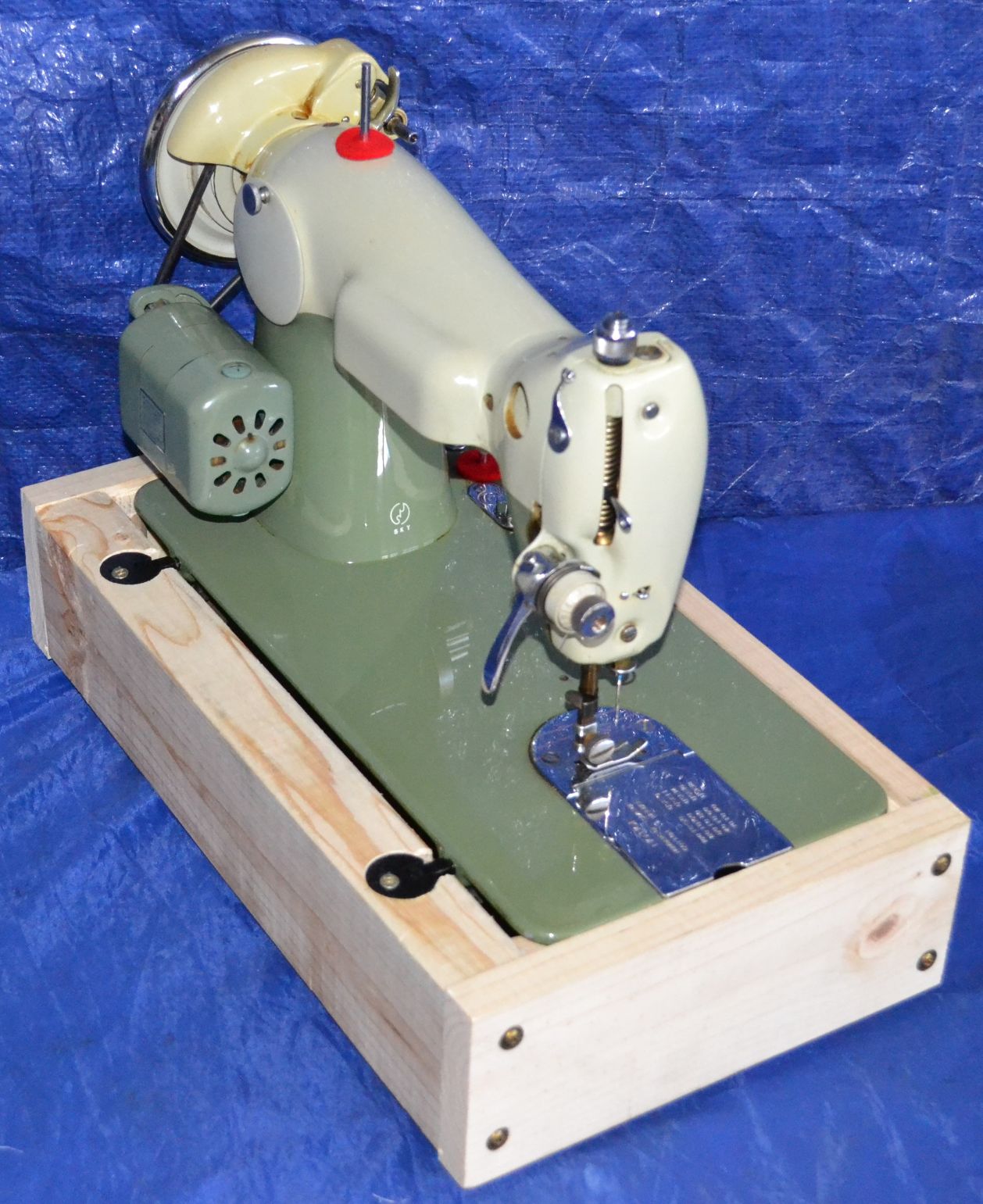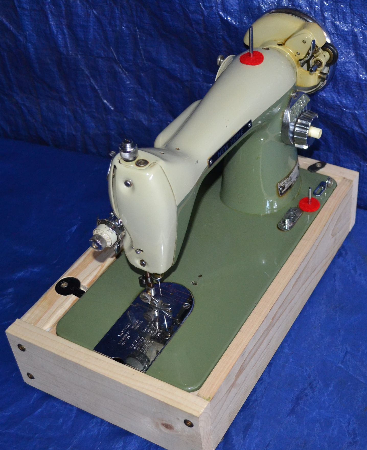 IS A 2 TONE SEWING MACHINE AND HAS ATTACHMENTS, MANUALS, NEW BASE THAT I MAKE.