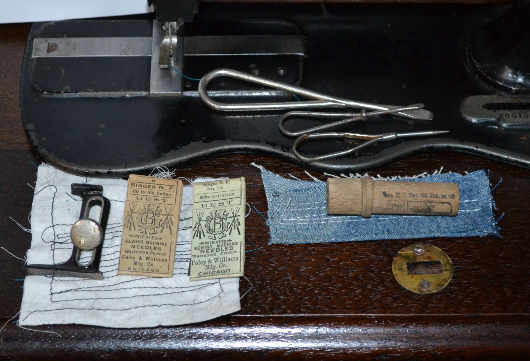 UNDERSTAND THIS IS ONE OF THE 1ST SEWING MACHINES MADE BY SINGER AND IT IS A LITTLE HARDER TO SET UP TO SEW WITH THAN MACHINES MADE LATER ON. WHEN YOU REPLACE THE NEEDLE YOU WILL NEED TO FOLLOW INSTRUCTIONS AND THE BOBBIN CASE SETS UP DIFFERENT TO APPLY TENSION ON THE STITCH BUT IS A VERY NICE MACHINE AND CABINET.