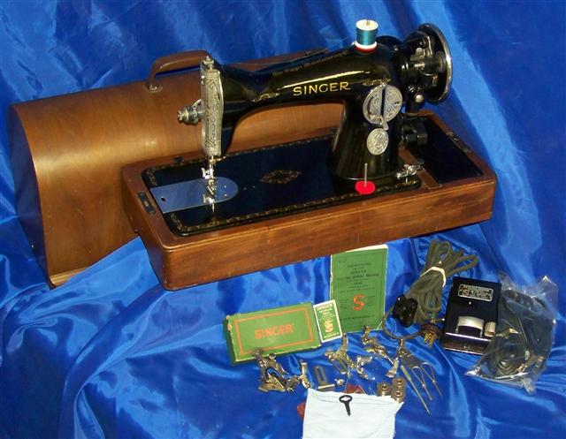 THIS IS A VERY NICE SINGER 15-91 SEWING MACHINE, I HAVE SEWED WITH HIM AND HE SEWS A GREAT STITCH AND IS A STRONG RUNNING MACHINE.
